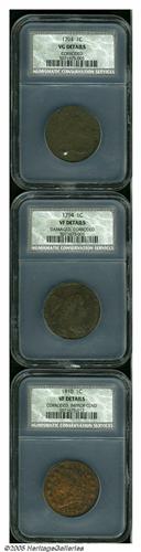 <B>1794<1C> Head of 1794 VG Details, Corroded, NCS,</B></I> S-24, R.1, a porous walnut-brown piece with a relatively clear obverse and an indistinct reverse; <B>1794 Head of 1794 VG Details, Damaged, Corroded, NCS,</B></I> S-38, High R.5, a rough and wavy piece with intermittent rim damage and a weak date; and an <B>1810/09 VF Details, Corroded, Improperly Cleaned, NCS,</B></I> S-281, R.1, unnatural orange color, some ebony corrosion.