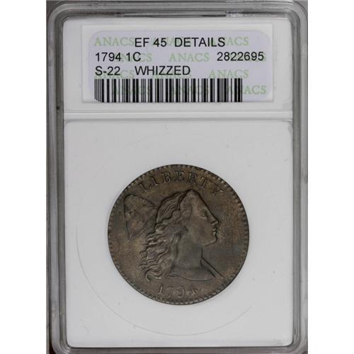 1794 1C Head of 1794--Whizzed--ANACS. XF45 Details. S- 1794[1C] Head of 1794--Whizzed--ANACS. XF45 D