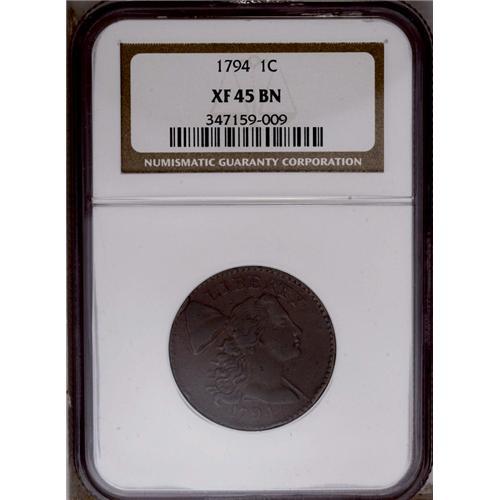 1794 1C Head of 1794 XF45 NGC. S-55, B-47, R.2. This p 1794[1C] Head of 1794 XF45 NGC.