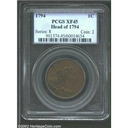 1794 1C Head of 1794 XF45 PCGS. S-26, R.2. The S-26 is easily attributed by the die crack through th