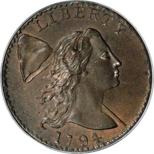 <B>1794 1C Head of 1794 MS66 Red and Brown PCGS.</B></I> S-26, R.2. The Red and Brown designation for early coppers is coveted; especially so on the cents of 1794, where survivors retaining any degree of mint-red coloration are seldom encountered. The numbers substantiate this claim: as of (12/07) PCGS has certified only 19 1794 cents with the Red and Brown label, regardless of variety or numerical grade. Furthermore, none have ever achieved the full Red designation in over 20 years of professional coin grading by PCGS. Of course both the NGC <I>Census Report </B></I>and the PCGS <I>Population Report </B></I>are not always completely accurate, for a variety of reasons, but the numbers are useful as a guide. Early copper specialists, however, are much more interested in condition census information than the population data of third party certification companies. The current coin is the Clapp-Eliasberg specimen, which Noyes considers to be tied the Sheldon coin as the finest known. The Eliasberg pedigree is noted on the PCGS holder, which is of the earlier generation, green label type.<BR> Identifying a 1794 cent as the S-26 variety is relatively easy, especially in the later die states where the reverse exhibits two prominent die cracks. William Sheldon, in his ground breaking treatise on early large cents, <I>Penny Whimsy</B></I>, provides exacting detail of these die flaws: "The O in OF has a short, curved projection from its left side, which is always present. Nearly all specimens have a break through E of STATES to the point of the upper left leaf. Most specimens, certainly two-thirds, have a heavy break from the first S of STATES to the C of CENT. Many clash marks, or traces of injury to the die are present. There are five berries on the left and six on the right branch. The fraction bar is long and pointed at both ends." This reverse, identified in the Breen reference as reverse die "J," was only used on the S-26 die marriage, thus simplifying attribution. Sheldon called this the "Severed Hair Strands" variety, due to the detached curls at the back of Liberty's head. This phenomenon was caused by excessive die grinding or polishing. Breen's <I>Encyclopedia of Early United States Cents 1793-1814 </B></I>describes eight die states for S-26, with the current coin being Die State VII.<BR> The astonishing aesthetic qualities of this early cent are memorable. When rotated under a light source, the original red mint bloom pierces through the mellowed reddish-brown patination. The uninterrupted luster is satiny and consistent throughout. Other than a few toning spots, hardly worthy of mention, the surfaces appear to be free of defects. This well centered piece displays some minor rim weakness between 1 o'clock and 3 o'clock on the obverse, which is mentioned here only for the sake of accuracy. A splendid early copper with an impressive provenance. 1 in 66, 0 finer (12/07). EAC 63.<BR><I>Ex: George Seavey; William H. Strobridge (1873 sale), lot 221; Lorin G. Parmelee, (New York Coin & Stamp Co., 6/1890), lot 686; J.F. Anger; John G. Mills, (S.H. & H. Chapman sale, 4/1904), lot 1238; George H. Earle, Jr., (Henry Chapman, 6/1912), lot 3376; John H. Clapp (2/1942); Louis Eliasberg, Sr., (Bowers & Merena, 5/1996), lot 492; Anthony Terranova; Stack's (9/2005), lot 473.<BR>From The Madison Collection.</B></I><BR><BR><B>Coin Engraver:</B> Joseph Wright<BR><BR><b>Shipping:</b> Coins & Currency (<a target="_blank" href="http://www.heritageauctions.com/common/shipping.php">view shipping information</a>)