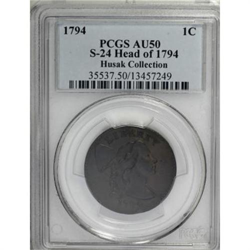 1794 1C Head of '94. AU50 PCGS. S-24, B-8, R.1.