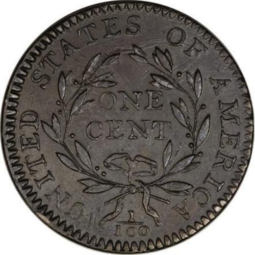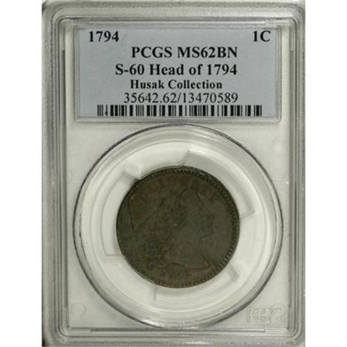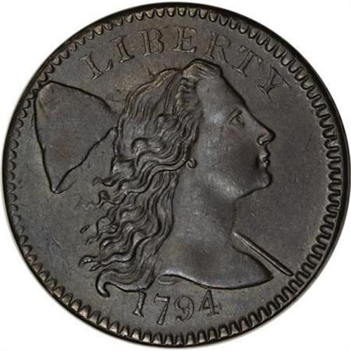 <B>1794 1C Head of '94. MS62 Brown PCGS. S-60, B-52, R.3.</B></I> <B>Bland AU55; tied for CC-2. Noyes AU50; CC-2. Photo #36873. Our EAC Grade AU55.<BR><BR>Equivalents. </B></I>Maris 23 (Patagonian); Frossard 14.1; Doughty 21; Hays 35; McGirk 2-C; Ross 22-X; Chapman 41; EAC 51; <I>Encyclopedia </B></I>1668; PCGS #901374.<BR><B><BR>Variety. </B></I>Date is closely spaced, hair is thick and luxuriant. Three berries below ER are nearly aligned. The obverse appears on S-60 and S-61. The reverse appears on S-60. Lettered Edge, leaf points up.<BR><B><BR>Surfaces. </B></I>Deep steel-brown surfaces with considerable luster and sharp design features. The obverse has a small splash of maroon on the cap. Nearly flawless surfaces with a few tiny planchet marks on each side. Conservatively graded "AU50+" in the John Adams price list by Bowers and Ruddy.<BR><BR><B>Die State IV.</B></I> Just shy of the terminal die state for the variety. Both sides have heavy clash marks, especially above the head and within the leaves below STA. The obverse has a crack through the tops of LIBE, extending left through the top of the cap. Another light crack can be seen from the border to the lowest hair curl, left of the 1. This is a later die state than examples of S-61, meaning that S-60 was struck on two different occasions with S-61 interrupting the die marriage.<BR><BR><B>Appearances. </B></I>The obverse and reverse are illustrated in Frossard-Hays and in Noyes (2006). The reverse is illustrated in <I>Penny Whimsy</B></I>.<BR><BR><B>Census. </B></I>The St. Oswald Collection revealed the finest known example of the variety, a splendid Mint State coin. This piece is second best, followed by a few XF coins and several VF pieces.<BR><BR><B>Commentary. </B></I>The present specimen, pedigreed back to Charles Bushnell, was unknown to Sheldon when he wrote <I>Early American Cents,</B></I> but was discussed in <I>Penny Whimsy</B></I>: "The ... Brand hoard remnant produced an AU55 in 1951."<BR><BR><B>Provenance. </B></I><I>Charles Bushnell; Lorin Parmelee (Chapman Brothers, 6/1882), lot 2625, $11; Chapman Brothers; Lorin Parmelee (New York Coin & Stamp Co., 6/1890), lot 689, $17; Dr. Thomas Hall (9/1909); Virgil M. Brand; New Netherlands (10/1951), lot 601, $205; Dr. William H. Sheldon; Dorothy Paschal; John W. Adams (Bowers and Ruddy, 1982 FPL), lot 57, $4,250; Dr. Boyd Hayward (Bowers and Merena, 9/1997), lot 262, $15,400; Dr. Allen Bennett (1/1998).</B></I><BR><BR><B>Personality. Charles I. Bushnell</B></I> was a New York lawyer who had a particular interest in Colonial coinage. He was born in New York City and died there on September 17, 1880. Some sources state that he was born in 1826, while others claim he died in 1880 at the age of 70. Bushnell is described as an extremely secretive man. He was the author of two booklets about trade tokens, political tokens, and election medals, published in the late 1850s. His collection was purchased intact by Lorin Parmelee for about $8,000. After Parmelee picked out pieces for his own collection, the remainder was sold by the Chapman brothers in June 1882, establishing the young duo as important numismatic auctioneers.<BR><BR><b>Shipping:</b> Coins & Currency (<a target="_blank" href="http://www.heritageauctions.com/common/shipping.php">view shipping information</a>)