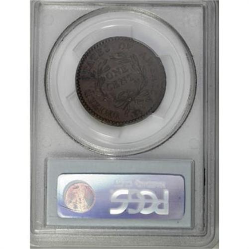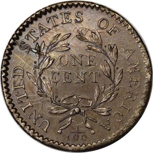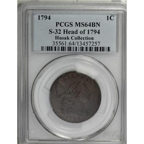 <B>1794 1C Head of '94. MS64 Brown PCGS. S-32, B-18, R.2. </B></I> <B>Bland MS60; CC-2. Noyes MS63; CC-2. Photo #22633. Our EAC Grade MS60.<BR><BR>Equivalents. </B></I>Maris 18 (Venus Marina); Frossard 25.1; Doughty 39; Hays 26; McGirk 3-E1, 3-E2; Ross 17-R; Chapman 11; EAC 17; <I>Encyclopedia </B></I>1668; PCGS #901374.<BR><B><BR>Variety. </B></I>Fourth and sixth locks from bottom turn upward. Incomplete leaves below TA, above O and E in ONE, and below RI. The obverse appears on S-32, S-33, and S-34. The reverse appears on S-32 and NC-11. Lettered Edge, leaf points up.<BR><B><BR>Surfaces. </B></I>Smooth olive surfaces with splashes of steel-brown color. Unevenly struck with the right obverse and reverse border weak, retaining numerous original planchet marks in the nearby fields. Nearly identical in strike and die state to the Herman Halpern specimen, lot 46 in the March, 1988 sale of that collection. It seems that the planchet was incorrectly fed into the Castaing machine. HUNDRED is only partially visible with the lower parts of each letter weak or absent.<BR><B><BR>Die State IV.</B></I> A late die state with a full obverse rim break over LI. The reverse has a heavy crack through the first S and the wreath with extensive clash marks.<BR><B><BR>Appearances. </B></I>The obverse and reverse are illustrated in Noyes (2006).<BR><B><BR>Census. </B></I>Just two Mint State examples of this otherwise common variety are known. Both of these top two coins (the other one is from the Henry Miller Collection) have been known since the early 20th century.<BR><B><BR>Commentary. </B></I>Despite the census records, Sheldon wrote in 1949 that he had never seen a Mint State example. A decade later, Sheldon was still unaware of these coins (or he graded them lower), observing: "The Venus Marina variety remains a collector's enigma, for although common there does not seem to be an available example at MS-60. The best we can offer are three in the 50's and a comparative abundance of nice examples at the F and VF levels." Today, half a century later, only two Mint State pieces are identified, and a total of just eight examples grade XF or better, per the Noyes census.<BR><BR><B>Provenance. </B></I><I>Discovered in Boston; Thomas Elder (10/1907), lot 137; Virgil M. Brand; B.G. Johnson (St. Louis Stamp & Coin Co., 3/1943); Abe Kosoff; New Netherlands Coin Co. (9/1953), lot 248, $155; Floyd Starr (Stack's, 6/1984), lot 25, $9,900; Dr. Allen Bennett (2000).</B></I><BR><BR><B>Personality. Abe Kosoff</B></I> was born in New York City on December 31, 1912, and died on March 19, 1983, in Palm Springs, California. A graduate of New York University, he started in the coin business in 1937. He opened Numismatic Gallery in 1939 and conducted a number of auctions in partnership with Abner Kreisberg until 1954. Kosoff conducted additional sales under his own name, including several significant large cent sales such as T. James Clarke, Sloss and Schwartz. He was a founder of the Professional Numismatists Guild in 1954 and served as president from 1954 to 1955 and from 1964 to 1965. Kosoff was a co-author of the <I>Official American Numismatic Association Grading Standards for United States Coins</B></I> and a columnist in <I>Coin</B></I> <I>World</B></I> and <I>Numismatic Scrapbook </B></I>magazine. He received the ANA Farran Zerbe Award in 1972 and was elected to the organization's Hall of Fame in 1982.<BR><BR><b>Shipping:</b> Coins & Currency (<a target="_blank" href="http://www.heritageauctions.com/common/shipping.php">view shipping information</a>)