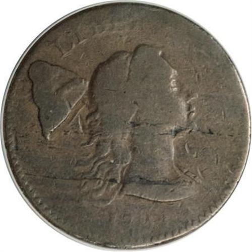 <B>1794 1C Head of 1793 Good 6 ANACS.</B></I> S-18a, B-2a, R.6. Only about 18 of these are known today, and only five of them grade better than Good 6, according to Bill Noyes. He illustrates this piece in his large cent photo book, with a grade of Fair 2. We prefer to call it AG3. Both sides have smooth dark brown surfaces with some flan lamination on the obverse. Overall, it problem ranks about ninth or 10th finest known. EAC 3.<BR><BR><b>Shipping:</b> Coins & Currency (<a target="_blank" href="http://www.heritageauctions.com/common/shipping.php">view shipping information</a>)