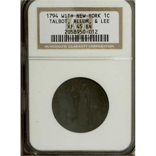 1794 1C Talbot, Allum & Lee Cent, NEW YORK XF45 NGC