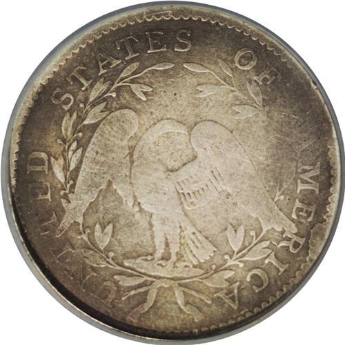 <B>1794<50C>--Repaired, Whizzed--NCS. VG Details.</B></I> O-104, R.5. The fields on each side show both evidence of whizzing and smoothing, the latter apparently to remove some porosity from the fields, while the eagle's right (facing) wing has been tooled to strengthen the detail in that area. The rim break above ER combined with the left and right lower stars piercing the devices is diagnostic.