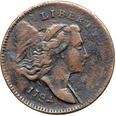 1794 C-4a R3. Fine-12. Small Edge Letters. Sharpness VF30 but very lightly corroded leaving fine granularity in the fields and protected areas on both sides. No contact marks. The highpoints and devices are slightly glossy chocolate brown while dark olive toning covers most of the fields and protected areas. The date is bold and the legends are strong. LDS, Manley state 4.0, with obvious swelling in the field under the cap.