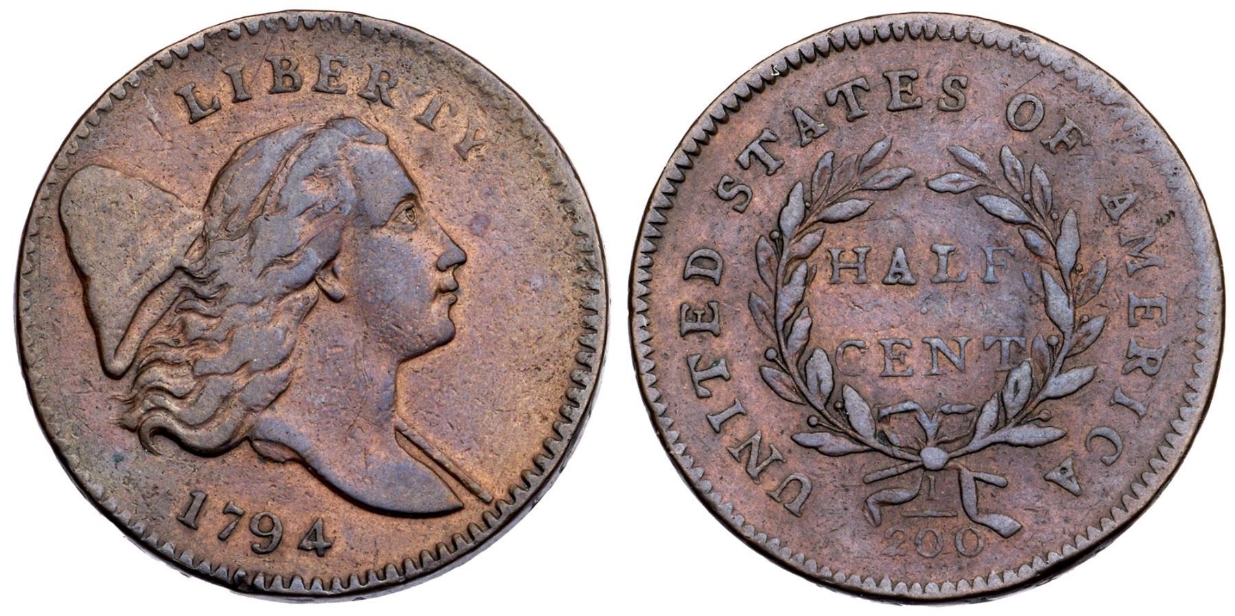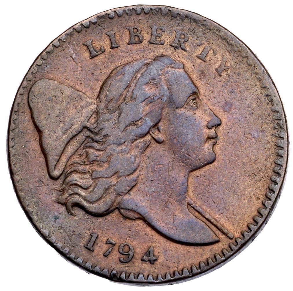 1794 C-5a R-4+ F1510 points sharper but cleaned and retoned long ago and now toned bluish steel brown with lighter brown underneath. There are trivial marks and abrasions on either side, the only worth noting is a rim nick below the 9. The reverse is rotated 70 degrees CW. EDS, Manley State 1.0.Certificate Number: Pedigree: Ex; Stacks store purchase 1970 - Roger S. Cohen Jr. Superior 2/1992:26 - Mark Hays EAC 2015 - Ray Rouse 1/24/2021 - Bob Kebler Collection