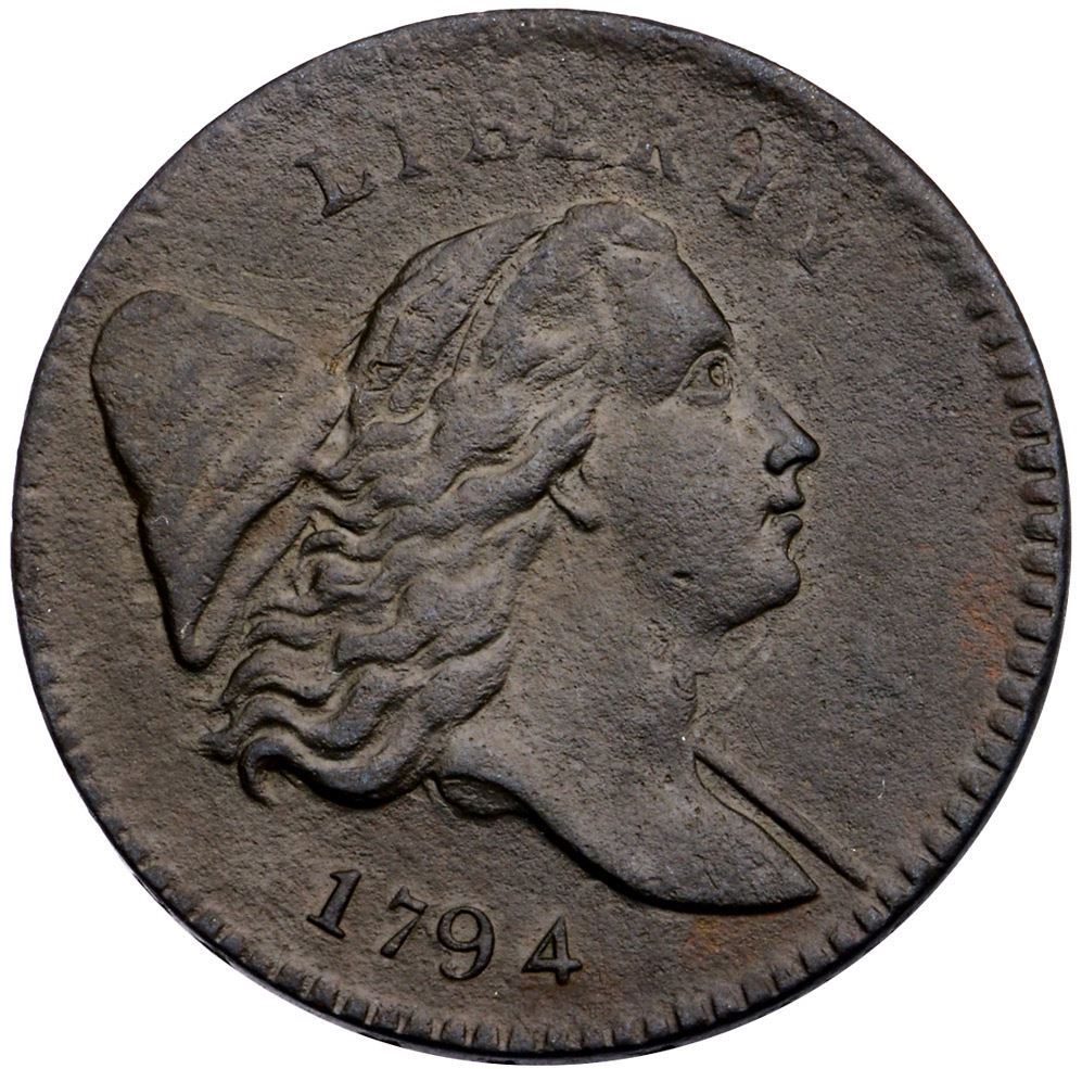 1794 C-6a R-5+ F15AU50 sharpness or better but covered with fine roughness. Has the look of a piece that was uncirculated when lost in an unfriendly environment for a time before being rescued. Uniform dark olive and steel. No verdigris, and the only marks are a tiny pinprick on the ajw and a nick on the left edge of the L in HALF. Manley state 1.0 with the clashmarks on the obverse and a minor bulge right of the date. Probably the sharpest known example of this rare die variety.Certificate Number: Pedigree: Ex; Goldbergs 6/2018:29 - CVM 8/2021 - Bob Kebler Collection