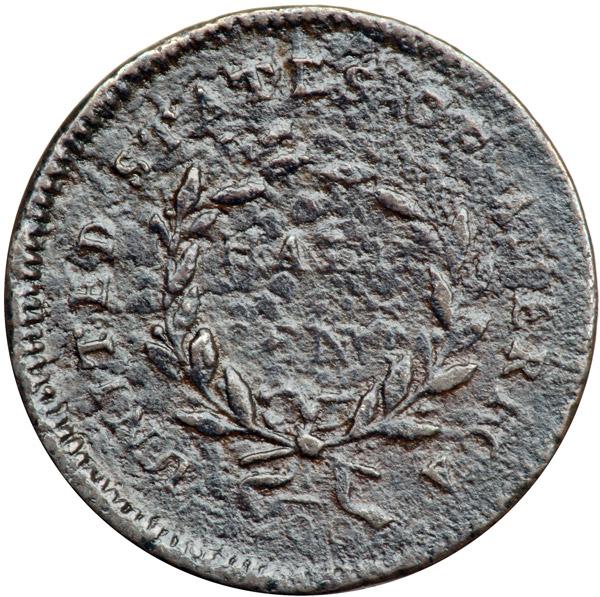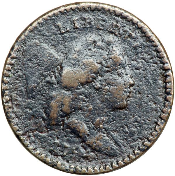 1794 C-8 R5 Liberty Cap, Head Right G4. Triple Edge Lettering. Sharpness VF20 or so but moderately corroded under a glossy chocolate brown patina. The color is attractive but the surfaces are not. Fortunately the date and legends are complete and readable. No verdigris or contact marks. The edge lettering is blundered (tripled) with "DOLLAR" visible three times in succession indicating this planchet went through the Castaing machine at least 3 times. You would be hard pressed to find a complete rendering of "TWO HUNDRED FOR A DOLLAR" thanks to the multitude of letters on the limited space available, but DOLL is clearly visible three times. All three impressions are oriented with the top of the letters on the obverse side of the planchet. An extremely rare error on a very rare die variety. Weight 105.4 grains. Davy #94.8.7.