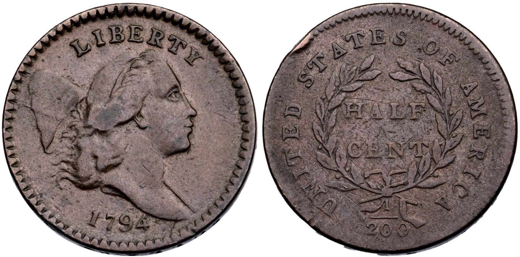 1794 C-9 R-2 VF20Nice glossy chocolate brown with a bit of darker steel brown toning on the highpoints of the hair left of the ear. The only notable mark is a small rim dent at the first T in STATES. Otherwise this piece is choice. LDS, Manley State 3.0. Weight 107.1 grains.Certificate Number: Pedigree: Ex; CVM 10/2005 - Bob Kebler Collection