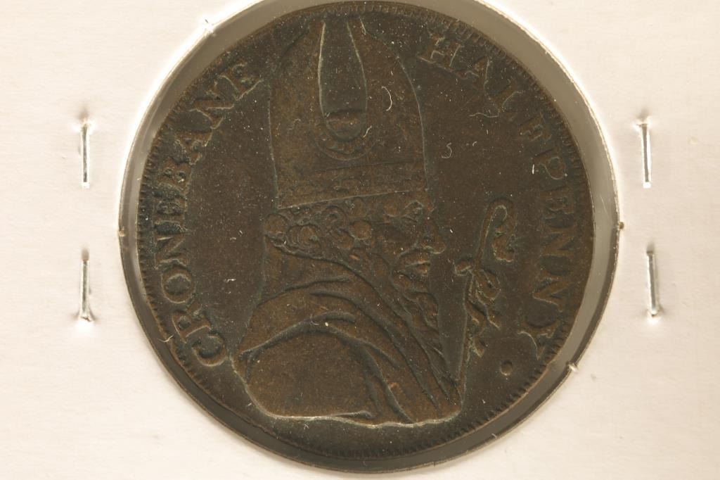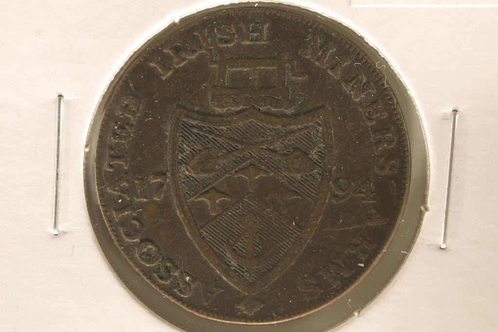 PROVINCIAL TOKENS PRIVATELY MINTED TOKEN COINAGE STRUCK AND USED DURING THE LATTER PART OF THE 19TH CENTURY IN ENGLAND. SIMILAR TO OUR CIVIL WAR AND HARD TIMES TOKENS. ASSOCIATED IRISH MINERS ARMS, CRONBANE HALF