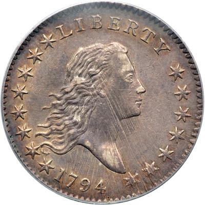 This extraordinary coin is certain to be a highlight of even the most advanced collection. The obverse is boldly struck with each of Liberty's hair curls carefully defined by the die, the reverse too is sharp with bold definition on the eagle's breast and wing feathers, features seldom seen on any 1794 Flowing Hair half dollar, let alone the coveted 1794 issue -- especially so for this rare die variety.