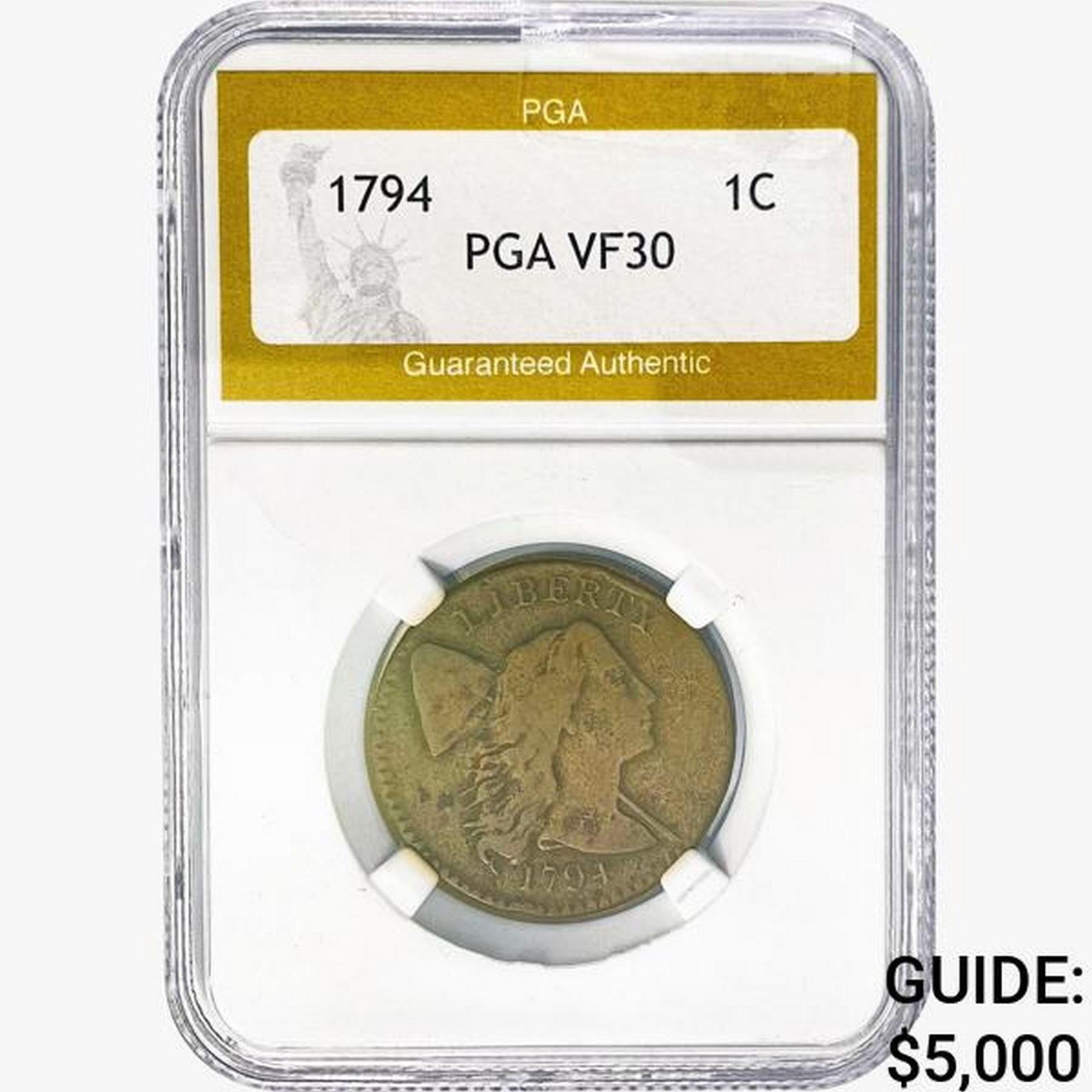 1794 Flowing Hair Large Cent PGA VF30