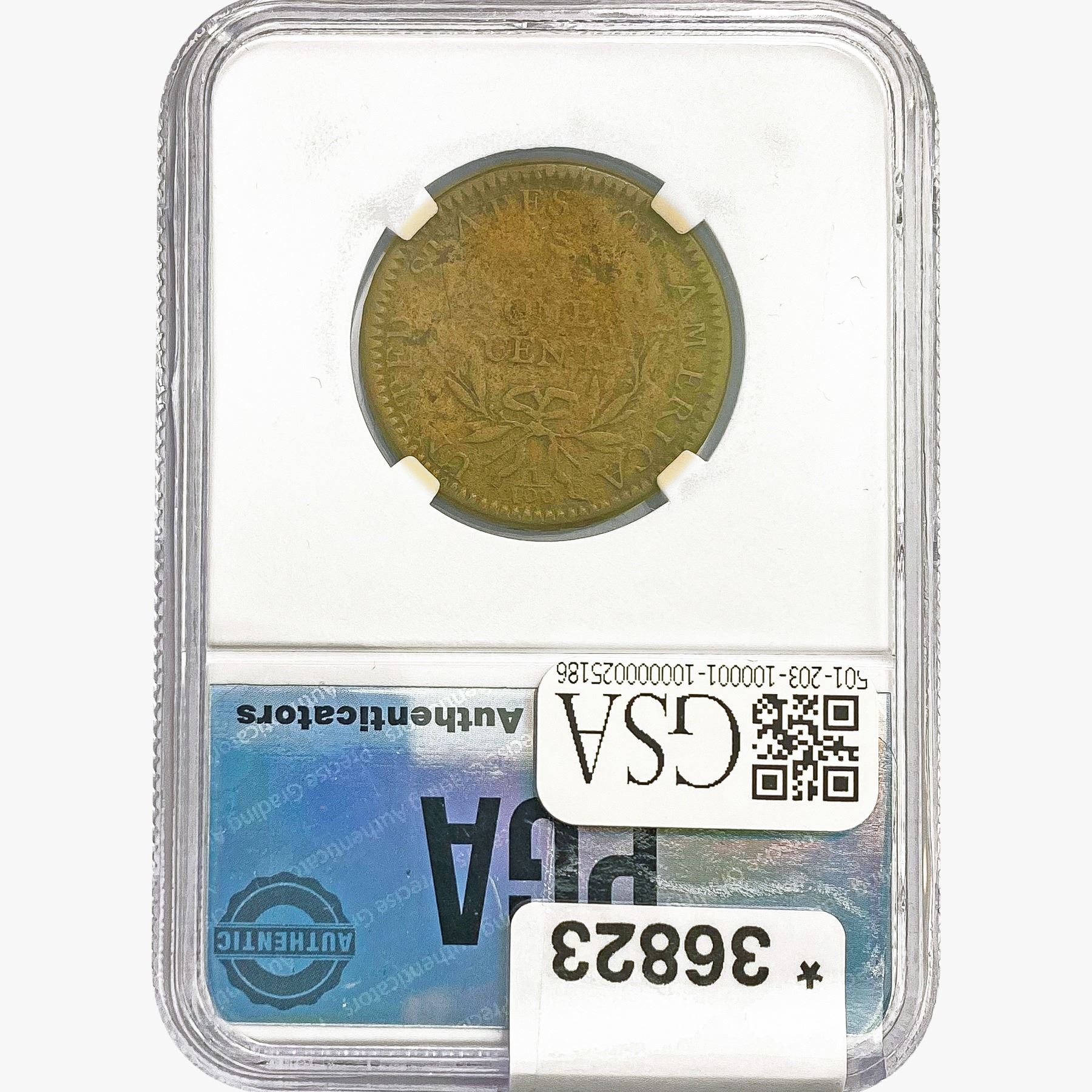COINS AND CURRENCY LISTED IN GSA’S CATALOG AS GRADED AND ENCAPSULATED BY PCGS, NGC, ANACS, ICG, PCGS CURRENCY, PMG, PCGS BANKNOTE GRADING, CMC OR ANY OTHER THIRD-PARTY GRADING SERVICE ARE LIKEWISE SOLD “AS-IS” EXCEPT AS EXPRESSLY SET FORTH HEREIN. ALL THIRD-PARTY GRADING SERVICE GUARANTEES, INCLUDING AUTHENTICITY, ARE THE SOLE RESPONSIBILITY OF THE THIRD-PARTY GRADING SERVICE AND NOT WARRANTIES OR GUARANTEES OF GSA. BIDDERS SHOULD CONTACT THESE THIRD-PARTY GRADING SERVICES DIRECTLY WITH RESPECT TO ANY CLAIMS OR QUESTIONS THEY MAY HAVE CONCERNING THEIR GUARANTEES AND WARRANTIES. BIDDERS ACKNOWLEDGE AND AGREE THAT AUCTIONEER IS NOT BOUND BY OR LIABLE FOR ANY OPINION OR CERTIFICATION BY ANY THIRD-PARTY GRADING SERVICE. REMOVAL OF A PRODUCT FROM ITS PROTECTIVE CASING OR HOLDER OR ALTERATION OF ANY COIN HOLDER WAIVES ALL RIGHTS CONCERNING THE PRODUCT CONTAINED THEREIN.