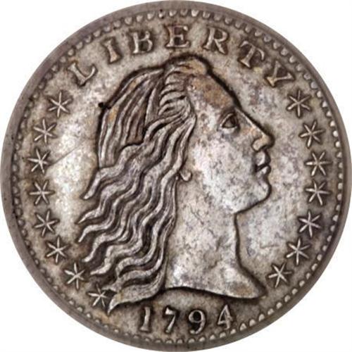<B>1794 H10C AU55 PCGS.</B></I> V-3, LM-3, R.4. The digit 9 is quite close to a dentil, and the 4 nearly touches a dentil. Star 1 touches both the first and second curls. On the reverse the berries are arranged seven left, six right, and a single berry is under the I of UNITED. A die crack runs from the rim through the left (facing) wing tip, through the wreath and the inner berry below I, through two leaves, and to the juncture of the wing bottom with the breast. Another crack runs from R in AMERICA, through a berry and two leaves to the eagle's tail. A third crack runs from right branch stem upward, meeting the second crack. The diagnostic die cracks are in a late state on this piece, and in particular the first mentioned is quite heavy and well-developed. Both sides show light, dappled steel-blue and gray patina, with a dash of gold in the center reverse. A nice, attractive Choice AU piece, free of major distractions or adjustment marks.<BR><BR><B>Coin Engraver:</B> Robert Scot<BR><BR><b>Shipping:</b> Coins & Currency (<a target="_blank" href="http://www.heritageauctions.com/common/shipping.php">view shipping information</a>)