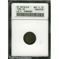 1794 H10C --Damaged--ANACS. VF Details, Net Fine 12. 1794 H10C --Damaged--ANACS. VF Details, Net Fin