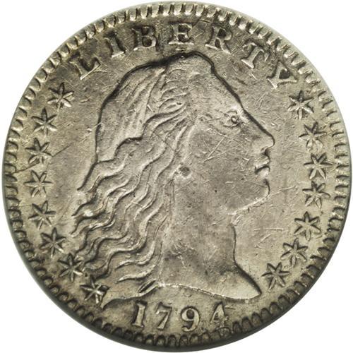 <B>1794 H10C --Scratched, Cleaned--ANACS. XF45 Details.</B></I> V-3, LM-3, R.4. This splendidly detailed example is mildly granular and a bit bright. Mostly untoned, with occasional glimpses of russet and forest-green toning. The portrait has a few wispy vertical marks. The dies exhibit cracks, but none has yet developed beneath the left (facing) wing.<BR><BR><b>Shipping:</b> Coins & Currency (<a target="_blank" href="http://www.heritageauctions.com/common/shipping.php">view shipping information</a>)