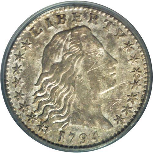 <B>1794<H10C> XF45 PCGS.</B></I> V-3, LM-3, R.4. A middle die state with several slender cracks, although no reverse die crack is seen at 8 o'clock. Medium olive-gold and lavender toning embraces this sharp representative. Glimpses of luster emerge from recesses of the devices. A few wispy handling marks are noted, but do not distract the eye. Certified in a green label holder.<BR><I>From The Royal Oak Collection.</B></I>