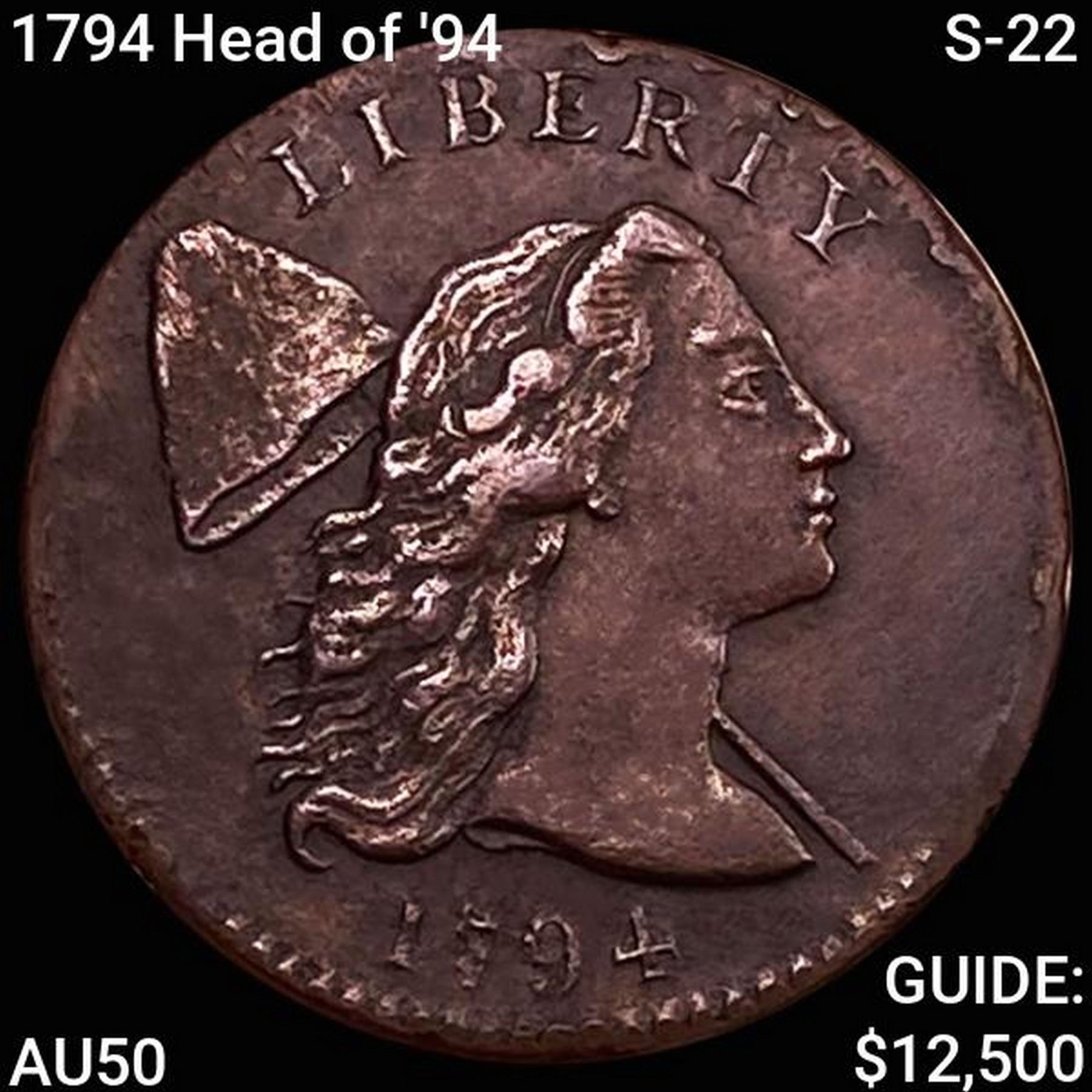 1794 Head of '94 S-22 Liberty Cap Large Cent CLOSELY UNCIRCULATED