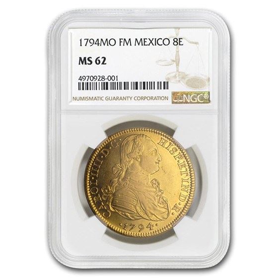 One piece 1794 Mo-FM Mexico Gold 8 Escudos Charles IV MS-62 NGC