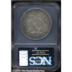 <B>1794<S$1> VF Details, Repaired NCS.</B></I> B-1, BB-1, the only known dies. It is difficult to locate a 1794 Flowing Hair Dollar in today's market that is completely problem-free. The coin in this lot is not perfect, but it does possess some noteworthy and desirable features besides the 1794 date. Of obvious importance is the striking definition along the lower left obverse periphery. Stars 1, 3, and 4 are discernible, if not complete, and only star 2 can be described as being totally absent. All four digits in the date are readily evident, this despite a little softness of detail over the 1. The reverse die was also misaligned at the time of striking with the result that the TED in UNITED and STATE in STATES are more or less absent. All other design features are at least present, and there is some bolder definition in the more protected areas of the obverse portrait and reverse eagle. Now for the surface preservation. Both sides reveal some scattered circulation marks, but none are particularly noteworthy given the amount of wear that this coin saw. Much of the surfaces display not unattractive dove-gray coloration, although we do note a few areas of variegated color around the peripheries. This last feature brings us to this coin's most significant detraction: a plug through the upper obverse. This repair was rather well executed on the reverse, yet markedly less so on the obverse as far as the E in LIBERTY is concerned. Nevertheless, as a mid-grade survivor of this fabled numismatic rarity that offers relatively good overall definition, this coin represents a bidding opportunity that one should consider most carefully. <BR><BR><B>Important notice:</B> Heritage usually auctions material at the rate of 200-250 lots per hour. On some occasions eBay Live bid software or the Internet may not be able to keep up with the pace of the auction. We recommend placing a realistic absentee bid now as insurance to avoid disappointment. Occasionally the auctioneer may eliminate or reject an eBay Live bid, and the auctioneer may also reopen a lot after the close of the eBay live bidding (usually because we missed an audience bid), and may reject your bid even if it shows you as the winning bidder. By bidding via eBay Live, you agree that Heritage may award the lot to another bidder at its sole discretion under the circumstances described above or any other reasonable circumstances. Since eBay bids are not shown to us until we open the lot on the floor, we treat those bids just like floor bids. In most cases the floor responds before the eBay bid is presented to us, due to Internet lag time, so for consistency we have made it a policy that floor bids are always considered first over tie eBay live bids. Also please note that all Heritage lots purchased through eBay Live carry a 20% Buyer's Premium. Please make sure you read the Terms and Conditions before you bid.