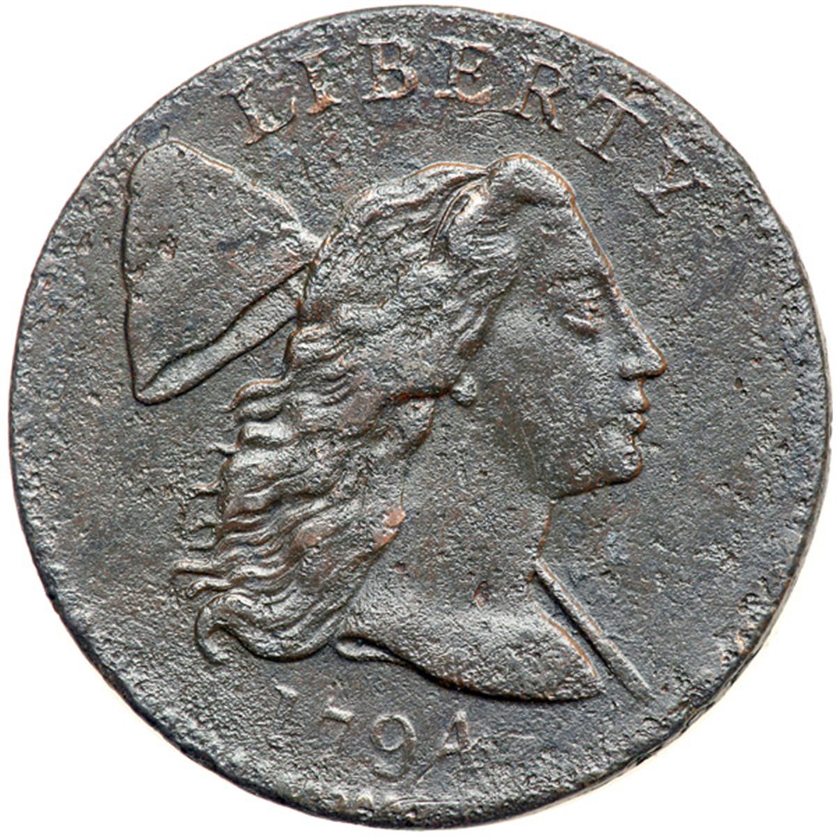 1794 S-22 R1 F12. Sharpness EF40 but covered with fine roughness with a few areas of moderate roughness in the mix. No verdigris or contact marks. Rather glossy dark chocolate and olive, the reverse a bit darker than the obverse. Very sharply struck EDS, Breen state I, prior to any hint of swelling on the reverse.