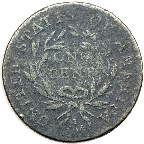 1794 S-28 R2 VG7. The obverse is sharper than the reverse, as usual for this variety, but both sides are covered with very fine roughness. Otherwise the grade would be several points higher. No verdigris, and the only notable marks are a light rim bruise at the Y in LIBERTY and a rim nick at the N in UNITED. The date is weak but readable and the legends are complete. Dark olive and steel with lighter steel brown toning on the highpoints.