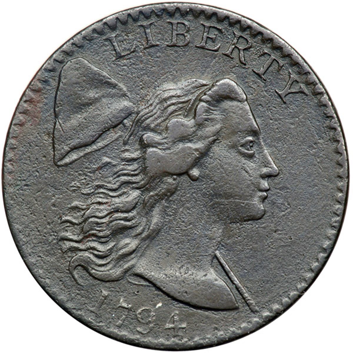 1794 S-42 R4 F12. Sharpness VF30 but covered with very fine roughness. No verdigris and the only mark is a barely visible rim bruise at AM in AMERICA. Rather glossy dark olive and steel with a swipe of reddish chocolate near the rim left of the cap and a small spot of similar toning over the N in ONE. The date and legends are strong except for minor strike weakness at TES OF. Looks better than the net grade might imply.