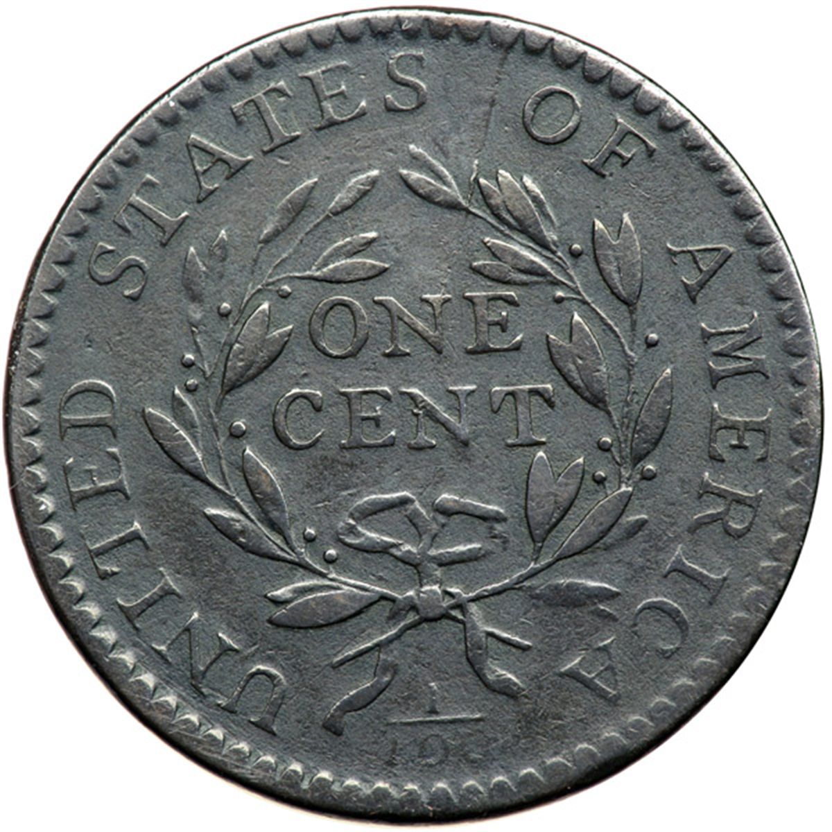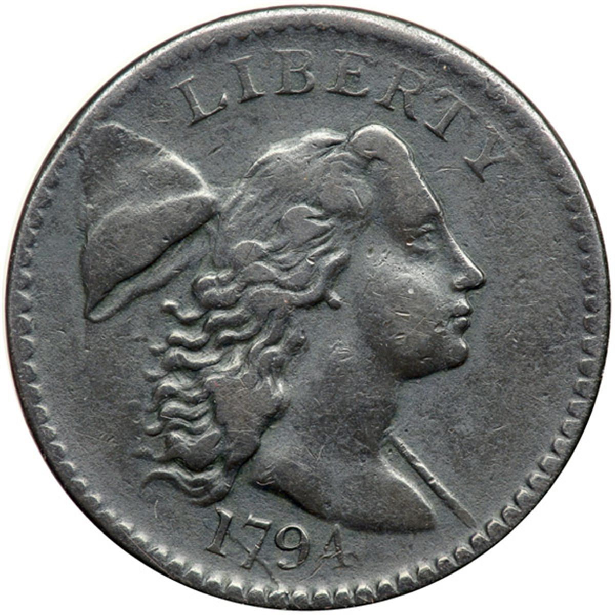 1794 S-44 R1 VF20. Glossy dark chocolate brown with frosty steel overtones in protected areas. The devices are perfectly smooth while extremely faint roughness covers the protected areas on both sides. Excellent eye appeal. No marks or other defects. MDS, Breen state III. The die crack from the rim at S-O clearly reaches the N in ONE.