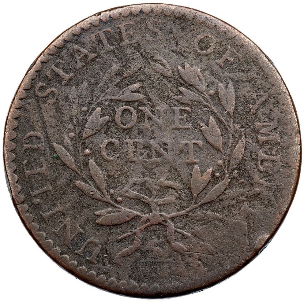 Sharpness near F12 with fine roughness covering the planchet, strongest on the reverse. No verdigris and the only notable contact marks are a dull rim nick at the C in AMERICA and a short scratch at the U in UNITED. EDS, Breen state I, with no die cracks on the reverse. The date is strong and only a couple letters of the legend are weak or gone.