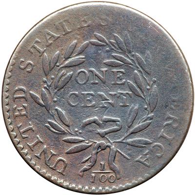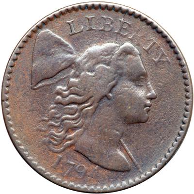 1794 S-49 R2. Fine-12. Sharpness near VF20 but covered with extremely faint roughness in the fields and protected areas. No verdigris or marks. Lightly cleaned and nicely retoned an attractive glossy chocolate brown. The date and legends are complete and clear except for weakness at OF AM due to the reverse being slightly misaligned to K-2. M-LDS, Breen state II late, with a clear die crack from the rim down through the E in LIBERTY to the head.
