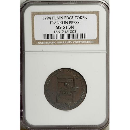 1794 TOKEN Franklin Press Token MS61 Brown NGC. Breen-
