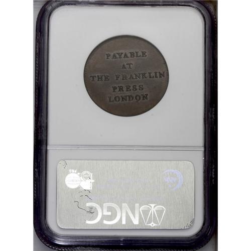 <B>1794<TOKEN> Franklin Press Token MS64 Brown NGC.</B></I> Breen-1165. The rich reddish-brown surfaces have a hint of granularity, but are virtually free from most contact. A well struck representative that has diagnostic die breaks in the center of the press and through the RT in LIBERTAS. Listed on page 72 of the 2007 <I>Guide Book.</B></I>