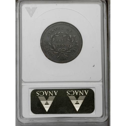 <B>1795<1/2 C> Lettered Edge, Punctuated Date--Graffiti--ANACS. VF30 Details.</B></I> C-2a, B-2a, R.3. The so-called Punctuated Date, a name derived from a long, comma-like die defect between the 1 and 7 in the date. The surfaces are mostly deep brown and smooth, but a large "X" has been scratched into the right obverse field, just below the level of Liberty's chin. Slight porosity is also noted on each side. EAC 8. <BR><BR><B>Important notice:</B> Heritage usually auctions material at the rate of 200-250 lots per hour. On some occasions eBay Live bid software or the Internet may not be able to keep up with the pace of the auction. We recommend placing a realistic absentee bid now as insurance to avoid disappointment. Occasionally the auctioneer may eliminate or reject an eBay Live bid, and the auctioneer may also reopen a lot after the close of the eBay live bidding (usually because we missed an audience bid), and may reject your bid even if it shows you as the winning bidder. By bidding via eBay Live, you agree that Heritage may award the lot to another bidder at its sole discretion under the circumstances described above or any other reasonable circumstances. Since eBay bids are not shown to us until we open the lot on the floor, we treat those bids just like floor bids. In most cases the floor responds before the eBay bid is presented to us, due to Internet lag time, so for consistency we have made it a policy that floor bids are always considered first over tie eBay live bids. Also please note that all Heritage lots purchased through eBay Live carry a 20% Buyer's Premium. Please make sure you read the Terms and Conditions before you bid. This lot is being auctioned in conjunction with a live floor auction by Heritage Galleries & Auctioneers. All final auction and invoice information will be supplied by Heritage Galleries & Auctioneers, and all other information should be considered preliminary. Lot:203 <BR><BR><B>Winning Notification and Billing:</B> After the FINAL session in this auction is complete, Heritage will send e-mail and snail mail invoices. This process normally takes several days. All final auction and invoice information will be supplied by Heritage Galleries & Auctioneers, and all other information should be considered preliminary. <BR><BR>This auction will be conducted on a live auction floor and over the Internet through eBay Live. If you choose to place an absentee bid, please take a moment to <font color='#0000ff'><u><a href='http://pages.ebay.com/liveauctions/help/before/laabsentee.html'>learn how eBay Live absentee bidding works</a></u></font><font color='#000000'>