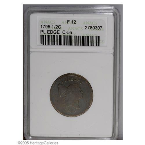 1795 1/2 C Plain Edge Fine 12 ANACS. B-5a, C-5a, R.3. 1795[1/2 C] Plain Edge Fine 12 ANACS.