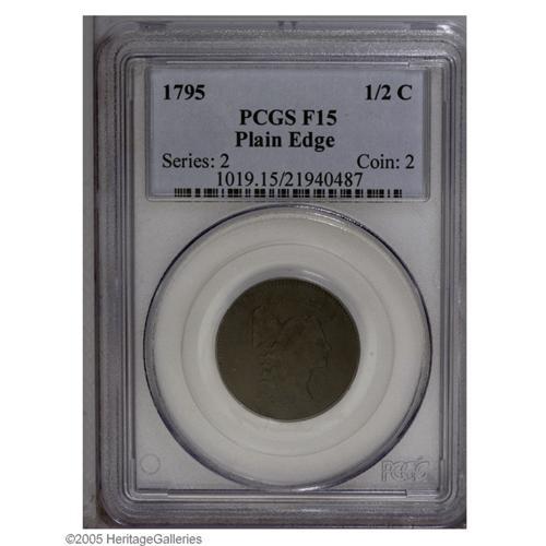 1795 1/2 C Plain Edge Fine 15 PCGS. B-6c, C-6a, R.2. A 1795[1/2 C] Plain Edge Fine 15 PCGS.