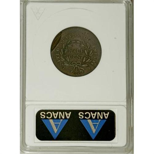 <B>1795 1/2 C Plain Edge--Damaged, Struck Thru--ANACS. VF20 Details.</B></I> C-6a. NGC Census: (3/42). PCGS Population (19/85). Mintage: 139,690. Numismedia Wsl. Price for NGC/PCGS coin in VF20: $1,425. (#1018)<BR><BR><B>Coin Engraver:</B> John Smith Gardner<BR><BR><b>Shipping:</b> Coins & Currency (<a target="_blank" href="http://www.heritageauctions.com/common/shipping.php">view shipping information</a>)