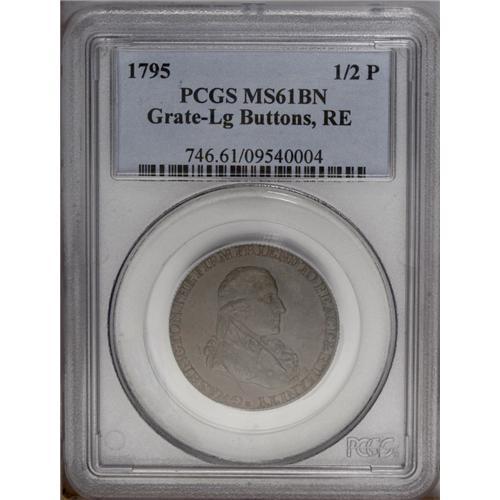 <B>1795<1/2P> Washington Grate Halfpenny, Large Buttons, Reeded Edge MS61 Brown PCGS.</B></I> Baker-29AA, R.1. A lovely example with chocolate-brown and red-brown coloration. Generally sharp, although the edge of the shoulder and a small portion of the grate borders show moderate softness. There are few noticeable abrasions, but a heavy planchet flaw (as struck) extends from Washington's shoulder into the field below. Struck from moderately rotated dies. Listed on page 79 of the 2006 <I>Guide Book.</B></I>