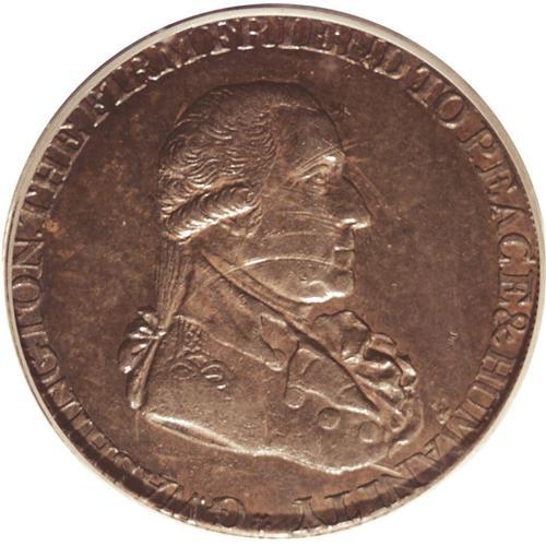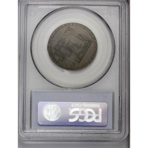 <B>1795<1/2P> Washington Grate Halfpenny, Large Buttons, Reeded Edge MS60 Brown PCGS.</B></I> Baker-29AA, R.1. Moderately prooflike mahogany fields show only lesser marks, although Washington's face exhibits a few curved thin abrasions. Well struck save for minor softness on the shoulder and opposite near the upper left of the grade. Listed on page 79 of the 2007 <I>Guide Book.</B></I>