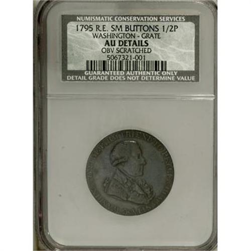 <B>1795 1/2P Washington Grate Halfpenny, Small Buttons, Reeded Edge--Obverse Scratched--NCS. AU Details.</B></I> NGC Census: (0/0). PCGS Population (4/26). (#749)<BR><BR><b>Shipping:</b> Coins & Currency (<a target="_blank" href="http://www.heritageauctions.com/common/shipping.php">view shipping information</a>)