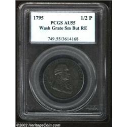 1795 1/2P Washington Grate Halfpenny, Small Buttons, Reeded Edge AU55 PCGS. Baker-29d, R.3. A mahoga