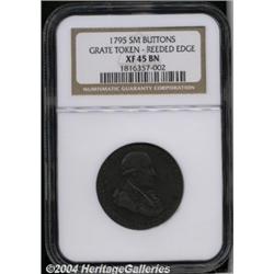 <B>1795<1/2P> Washington Grate Halfpenny, Small Buttons, Reeded Edge XF45 NGC.</B></I> Baker-29D, R.3. A nicely detailed mahogany-brown Washington piece. Problem-free aside from a speck of PVC residue southwest of the reverse center. Scarcer than the Large Buttons, Reeded Edge variety. Listed on page 61 of the 2004 <I>Guide Book.</B></I> <BR><BR><B>Important notice:</B> Heritage usually auctions material at the rate of 200-250 lots per hour. On some occasions eBay Live bid software or the Internet may not be able to keep up with the pace of the auction. We recommend placing a realistic absentee bid now as insurance to avoid disappointment. Occasionally the auctioneer may eliminate or reject an eBay Live bid, and the auctioneer may also reopen a lot after the close of the eBay live bidding (usually because we missed an audience bid), and may reject your bid even if it shows you as the winning bidder. By bidding via eBay Live, you agree that Heritage may award the lot to another bidder at its sole discretion under the circumstances described above or any other reasonable circumstances. Since eBay bids are not shown to us until we open the lot on the floor, we treat those bids just like floor bids. In most cases the floor responds before the eBay bid is presented to us, due to Internet lag time, so for consistency we have made it a policy that floor bids are always considered first over tie eBay live bids. Also please note that all Heritage lots purchased through eBay Live carry a 20% Buyer's Premium. Please make sure you read the Terms and Conditions before you bid. </span></font></tr></table></td></tr></table>