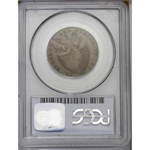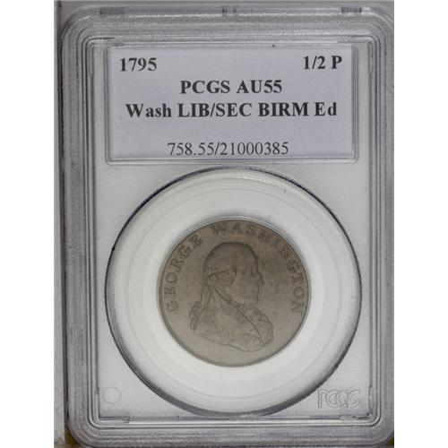 <B>1795<1/2P> Washington Liberty & Security Halfpenny, BIRMINGHAM Edge AU55 PCGS.</B></I> Baker-31B, R.5. A glossy and attractive chocolate-brown Washington piece. A planchet flaw (as made) is on the eagle's breast. A pinscratch below R in GEORGE is the only post-strike impairment. Listed on page 80 of the 2006 <I>Guide Book.</B></I> Population: 6 in 55, 4 finer (4/06).