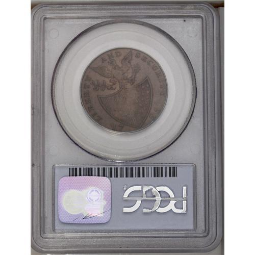 <B>1795<1/2P> Washington Liberty & Security Halfpenny, BIRMINGHAM Edge AU55 PCGS.</B></I> Baker-31B, R.5. This glossy light brown piece has reasonable central definition for the type. Only a curved, slender mark through the queue and a small lamination on the eagle merit mention. Listed on page 80 of the 2007 <I>Guide Book.</B></I> Population: 6 in 55, 4 finer (7/06).