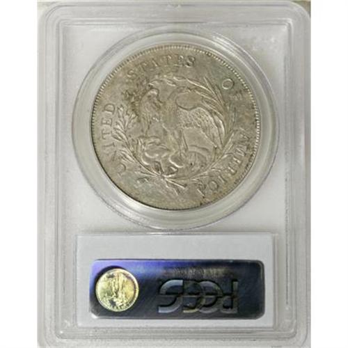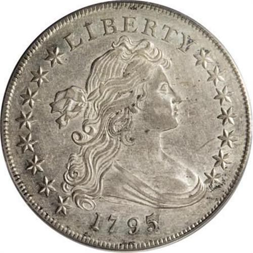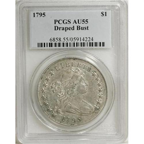 <B>1795 $1 Draped Bust, Centered AU55 PCGS.</B></I> B-15, BB-52, R.2. Liberty is well centered in the die, with the highest wave of hair under the E of LIBERTY. The lowest curl is close to 1 in the date, and star 1 is close to, but does not touch the curl. The reverse branch shows six berries, and there is a leaf under the A of STATES.<BR> This very pleasing Choice AU specimen displays bright silvery surfaces covered with light gray patination. Luster resides in the protected areas, and the design elements reveal sharp detail, save for light wear on the high points. The stars are bold, most of Liberty's hair strands show separation, ribbing on the leaves is visible, and most of the eagle's wing plumage is defined, as is about half of it on the torso. A few light contact marks are not at all significant, and there are just a few faint adjustment marks on the reverse.<BR><BR><B>Coin Engraver:</B> Robert Scot<BR><BR><b>Shipping:</b> Coins & Currency (<a target="_blank" href="http://www.heritageauctions.com/common/shipping.php">view shipping information</a>)