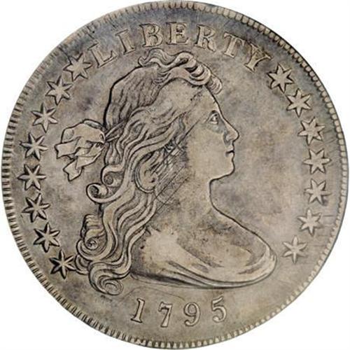 <B>1795 $1 Draped Bust, Off Center VF30 PCGS.</B></I> B-14, BB-51, R.2. Ivory-gray with glimpses of chestnut and sky-blue toning. An problem-free example with unusually unabraded rims. A few faded adjustment marks (as produced) are present near Liberty's ear and the right obverse margin. B-14 is believed to be the first Draped Bust variety of any denomination struck for circulation.<BR><BR><B>Coin Engraver:</B> Robert Scot<BR><BR><b>Shipping:</b> Coins & Currency (<a target="_blank" href="http://www.heritageauctions.com/common/shipping.php">view shipping information</a>)