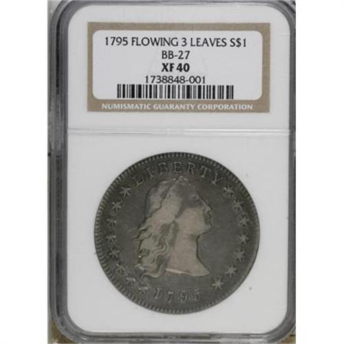 1795 $1 Flowing Hair, Three Leaves XF40 NGC
