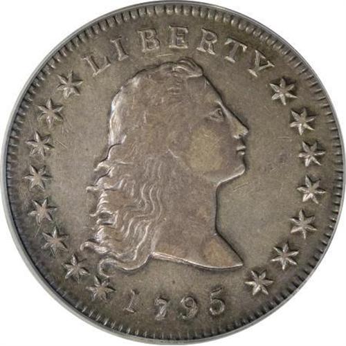 <B>1795 $1 Flowing Hair, Two Leaves VF30 PCGS.</B></I> B-1, BB-21, R.2. Medium gray surfaces flash tinges of electric-blue and rose iridescence when held at various angles. The strike is better than usually encountered and the level of wear is what one would expect to see on an higher grade example. A respectable amount of luster is noted in the protected areas. This conservatively graded Flowing Hair dollar housed in an older generation PCGS holder.<BR><BR><B>Coin Engraver:</B> Robert Scot<BR><BR><b>Shipping:</b> Coins & Currency (<a target="_blank" href="http://www.heritageauctions.com/common/shipping.php">view shipping information</a>)
